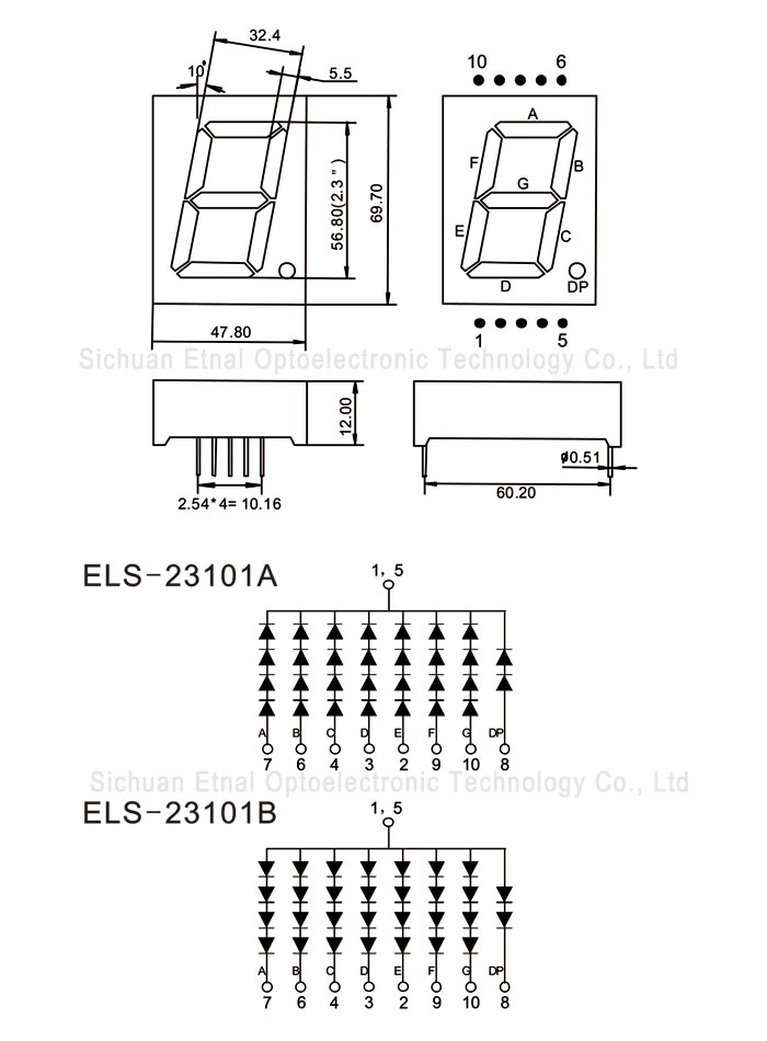 | ELS-23101BW | 2.3" 英寸 | 1位數(shù)碼管 | 共陽(yáng) | 白色 | 10-20 | 2.6-2.8 | / |