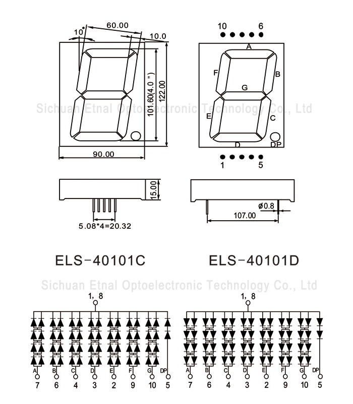 | ELS-40101CS | 4" 英寸 | 1位數(shù)碼管 | 共陰 | 紅色 | 5-20 | 1.8-2.0 | 620-640 |