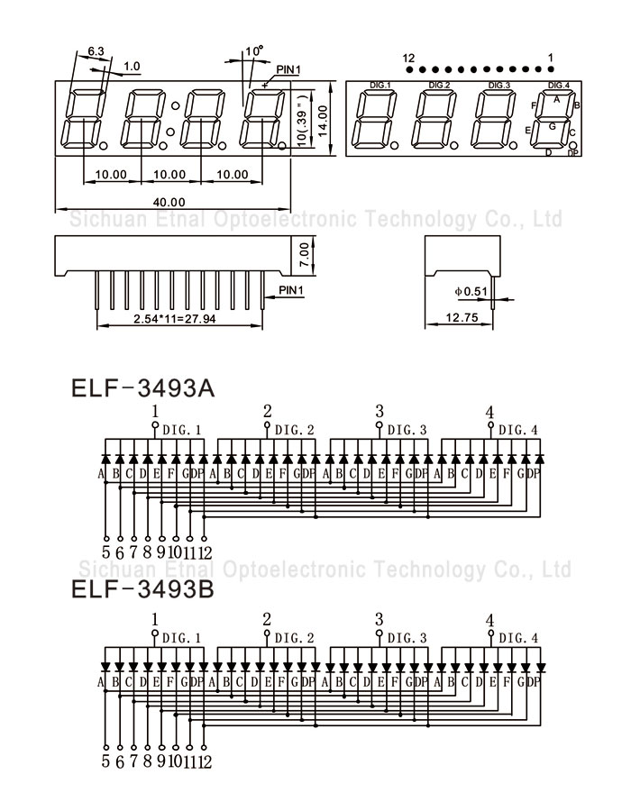 | ELF-3493BW | 0.39" 英寸 | 4位數(shù)碼管 | 共陽 | 白色 | 10-20 | 2.6-2.8 | / |