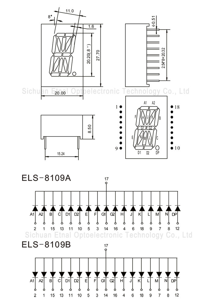 | ELS-8109BW | 0.8" 英寸 | 1位數(shù)碼管 | 共陽(yáng) | 白色 | 10-20 | 2.6-2.8 | / |
