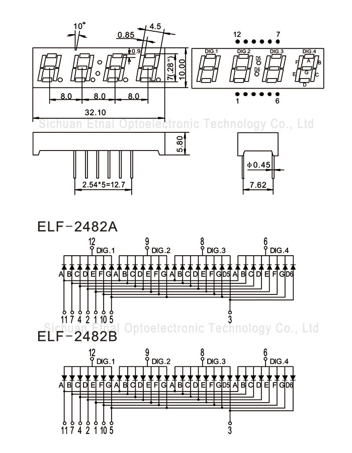 | ELF-2482AW | 0.28" 英寸 | 4位數(shù)碼管 | 共陰 | 白色 | 10-20 | 2.6-2.8 | / |